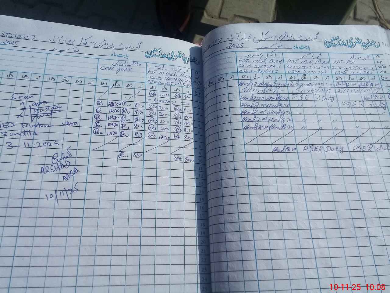 | Name: MKh**** Designation: (School Headmaster's/Headmistress's) E S E Phone/Cell Number: 03**** |