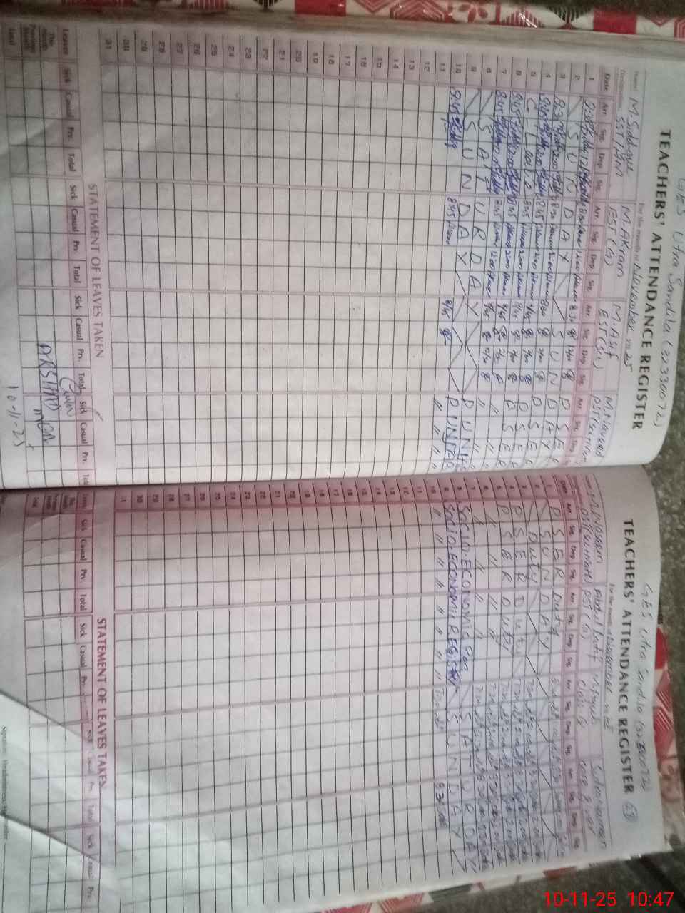 | Leave | Duty | Absent | Maternity | Medical | Ex- Pak |