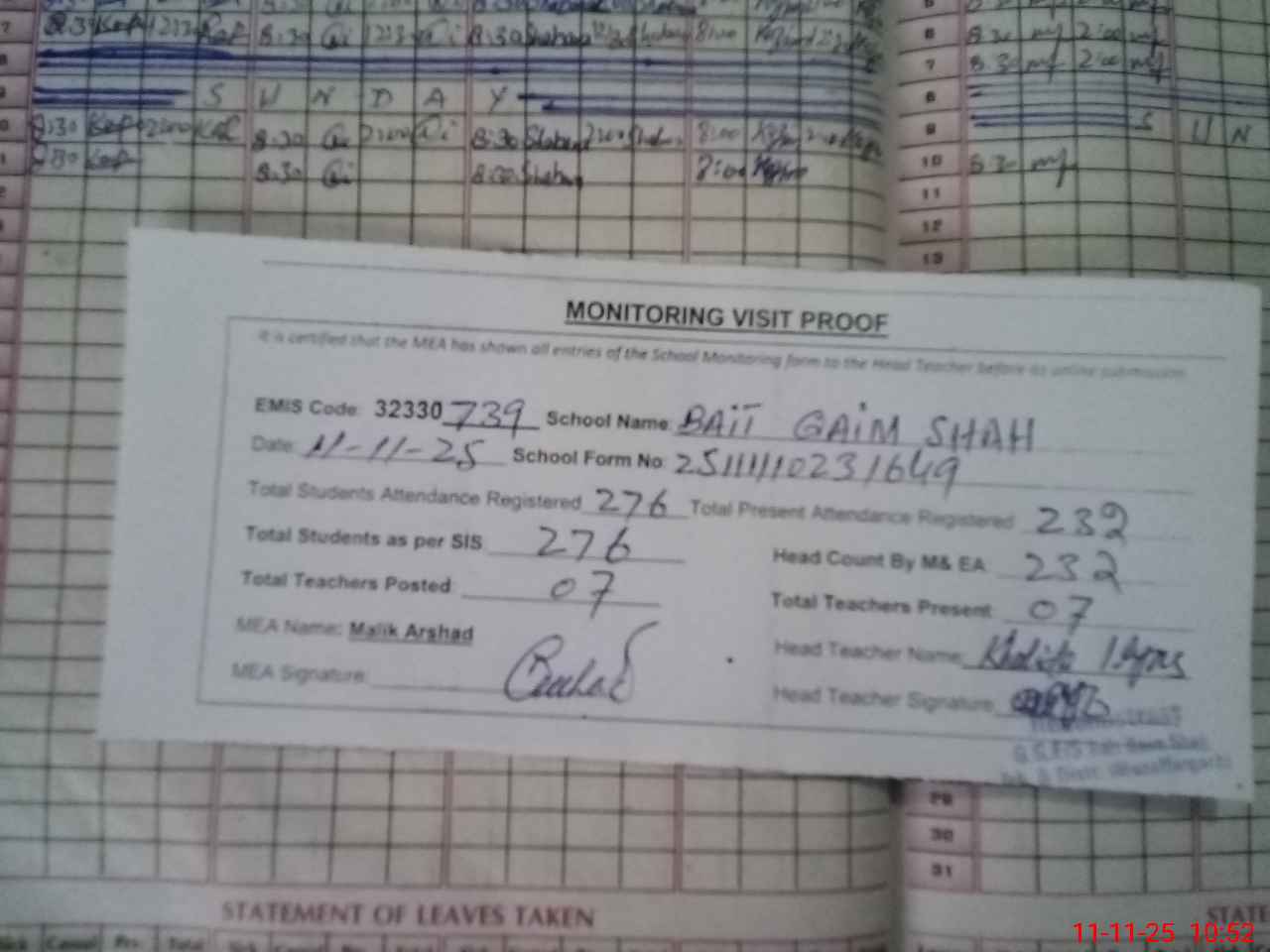 | EMIS Code: 32330739 | Name of School: GGES BAIT QAIM SHAH | |||