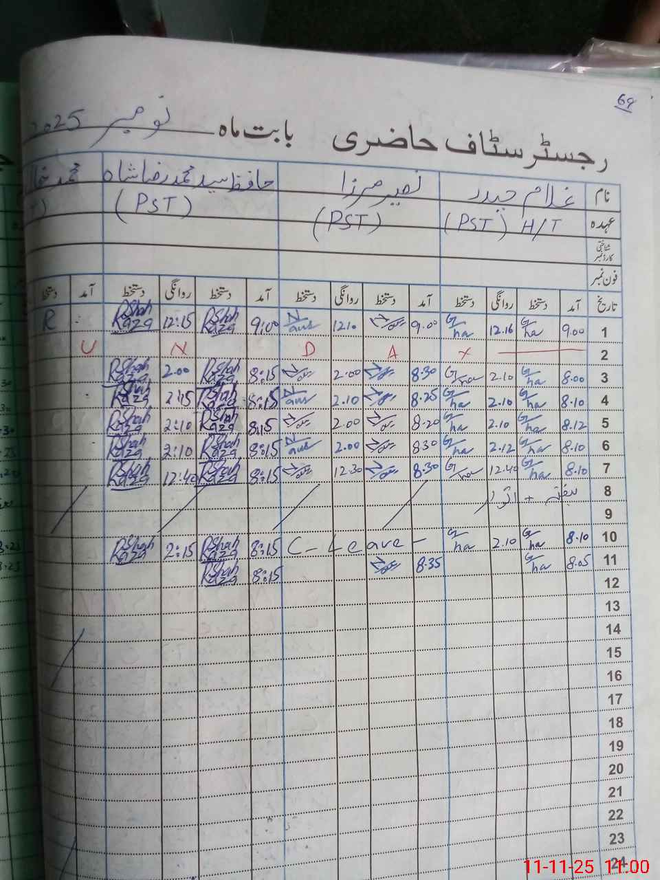| CNIC | Full Name | Designation | R/C | Absence During Last Calender Month |