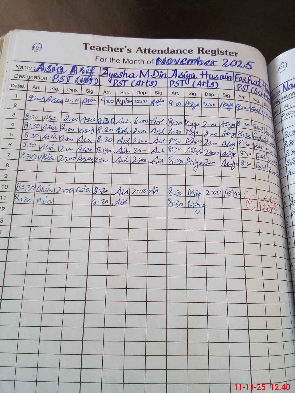 | Name: As**** Ar**** Designation: (School Headmaster's/Headmistress's) Head Mistress Phone/Cell Number: 03**** |