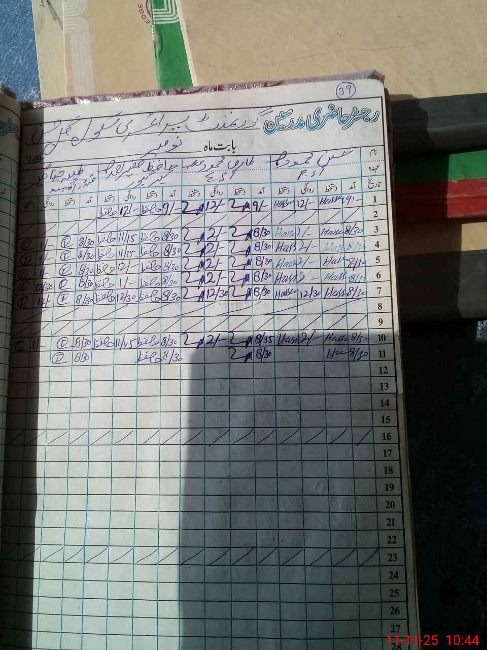 | CNIC | Full Name | Designation | R/C | Absence During Last Calender Month |