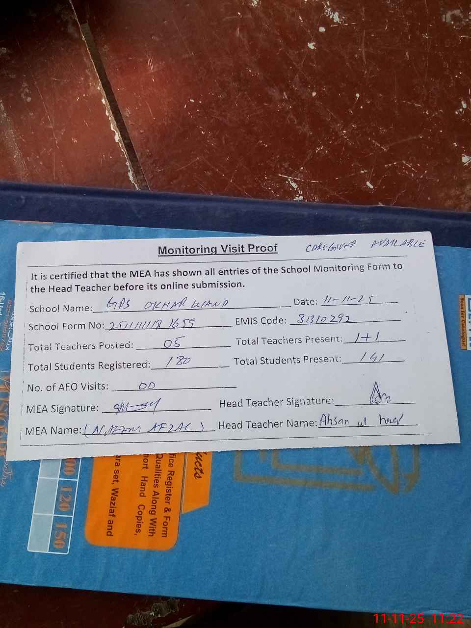 | EMIS Code: 31310292 | Name of School: GPS OKHAR WAND | |||