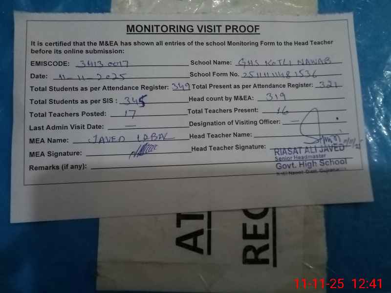 | EMIS Code: 34130017 | Name of School: GHS KOTLI NAWAB | |||