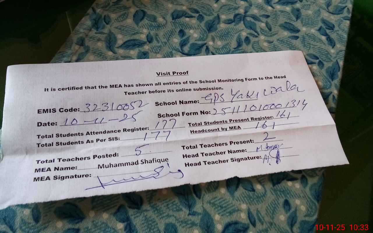 | Attendance Register | Head Teacher | MEA with School | Visit Proof |