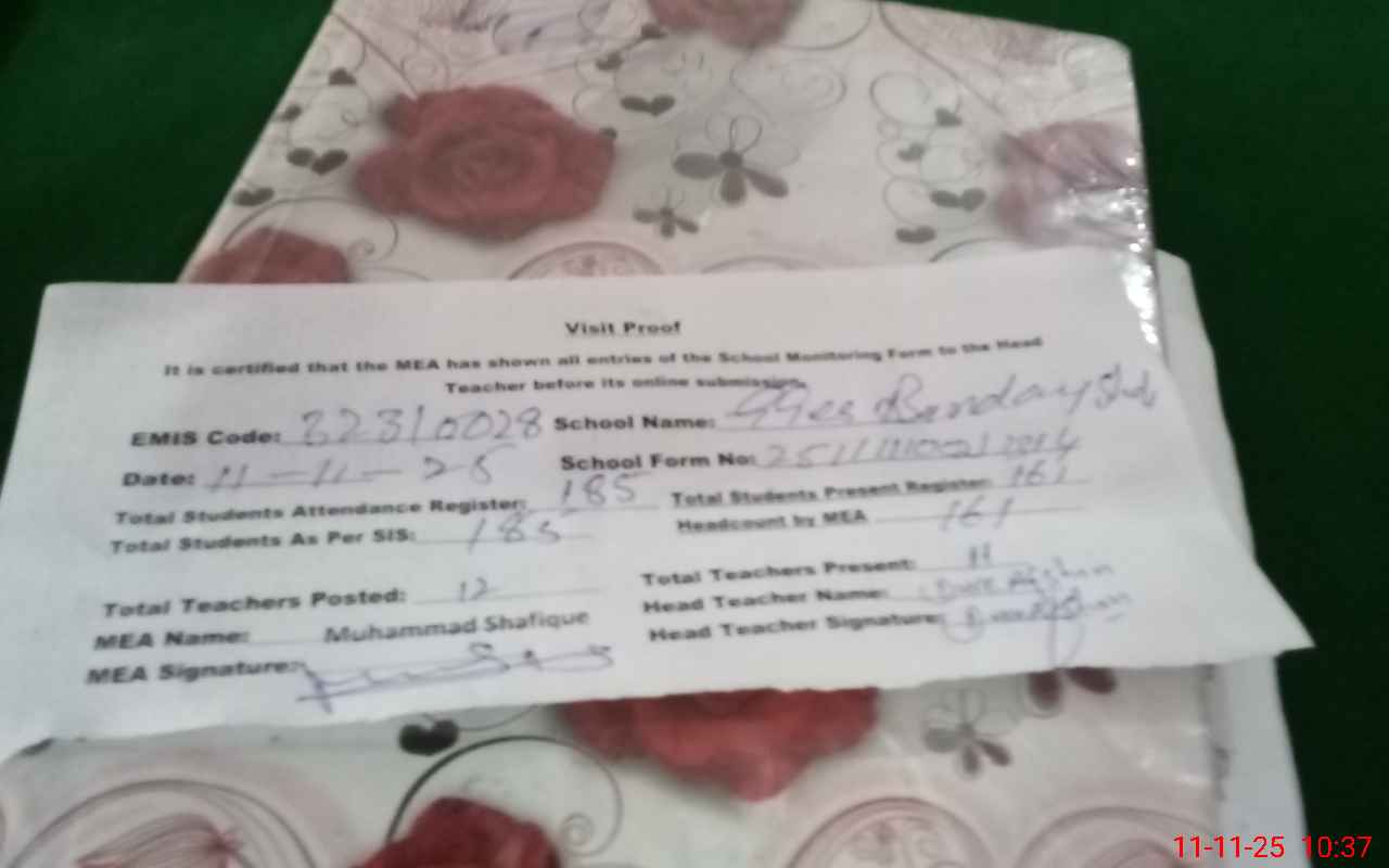 | EMIS Code: 32310028 | Name of School: GGES BANDAY SHAH | |||