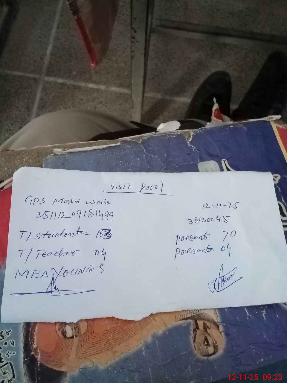 | Attendance Register | Head Teacher | MEA with School | Visit Proof |