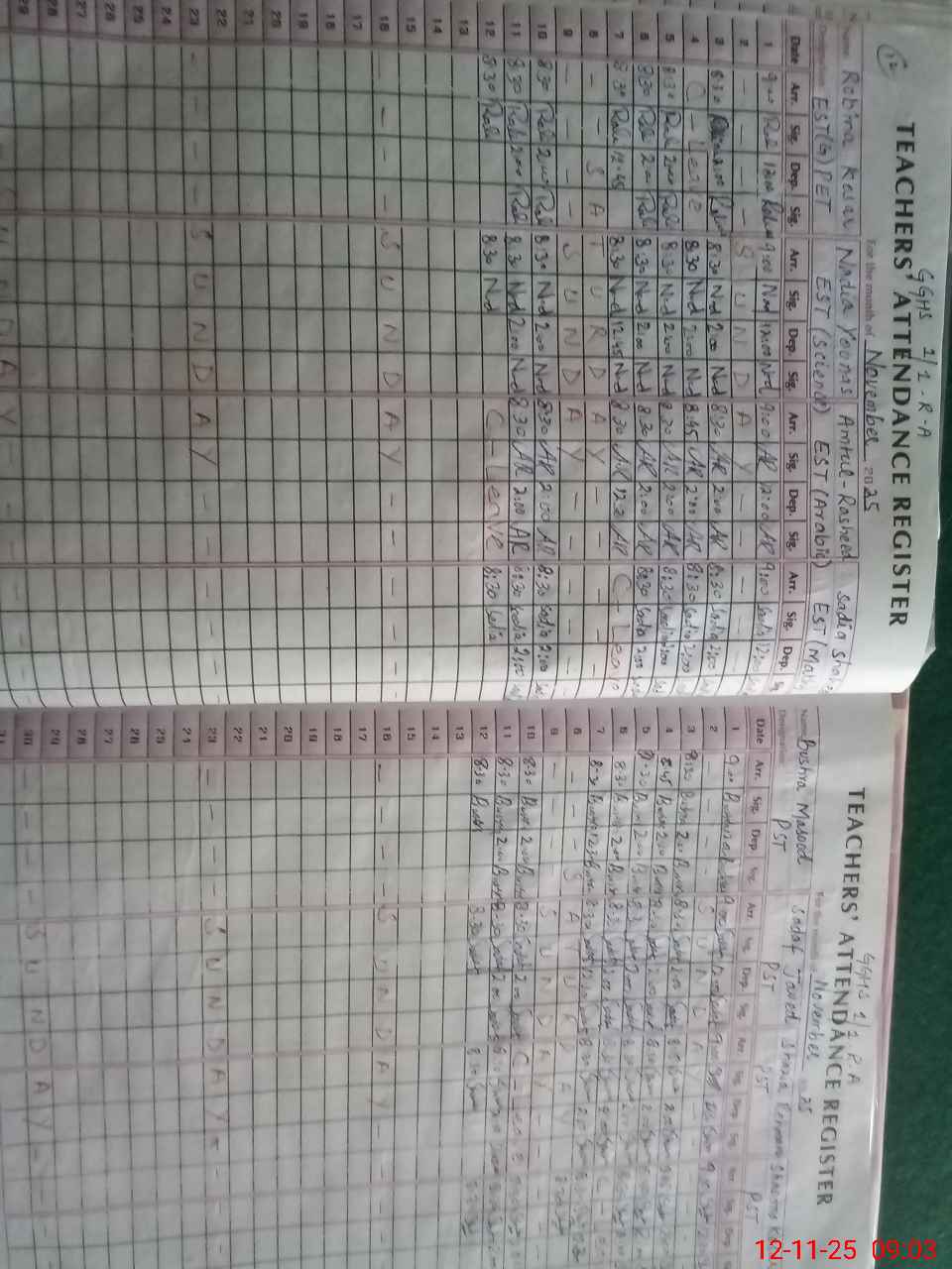 | 00**** | Na**** Ah**** | NQ | Regular | 0 | 0 | 0 | 0 | 0 | 0 | 0 | 0 | 0 | Absent (Un-Authorized) |