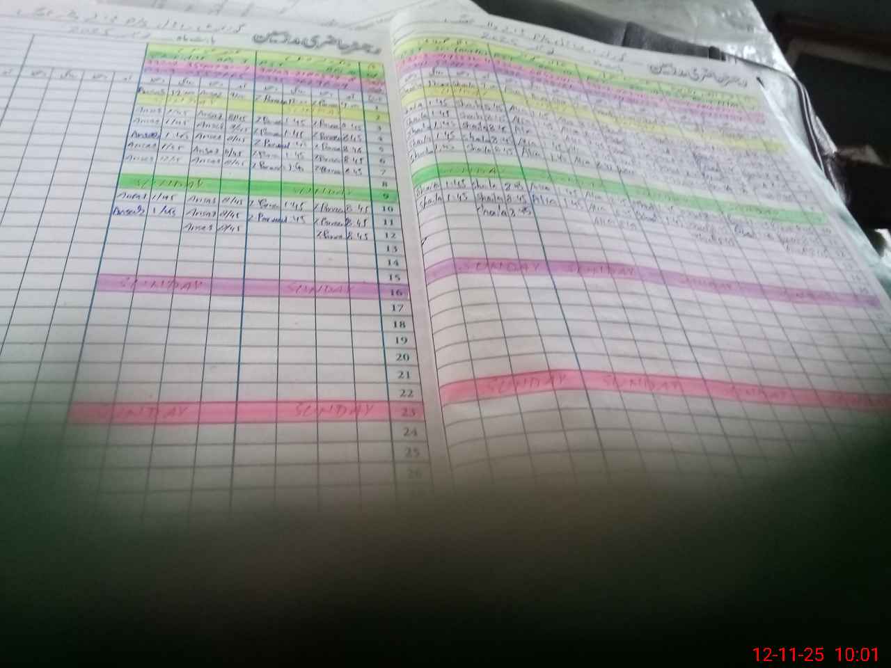 | CNIC | Full Name | Designation | R/C | Absence During Last Calender Month |