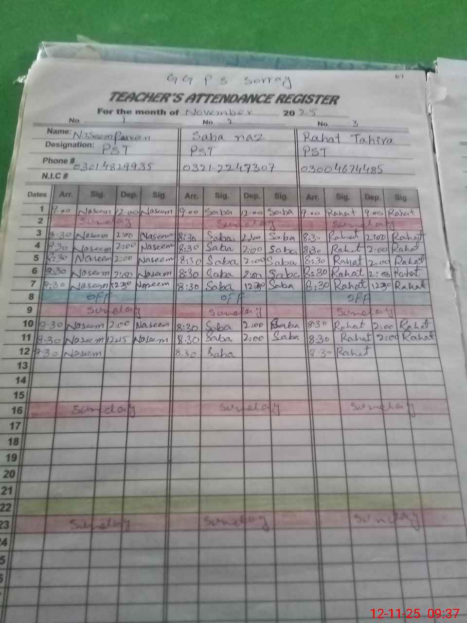 | Name: NA**** PA**** Designation: (School Headmaster's/Headmistress's) PST Phone/Cell Number: 03**** |