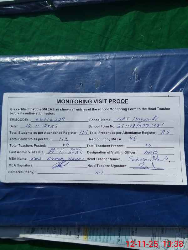 | EMIS Code: 34110229 | Name of School: GPS HOYWALI | |||