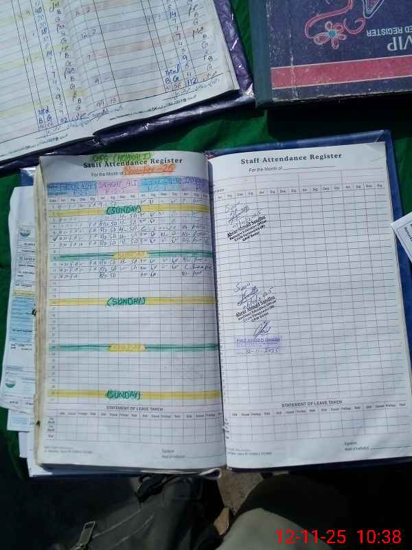 | Remarks (Use Separate Page if Required): Attendance of teaching staff and students on SIS Software is not updated NSB Record Register is not updated at the time of visit Data as per provided by School Staff and found during physical visit | |||||