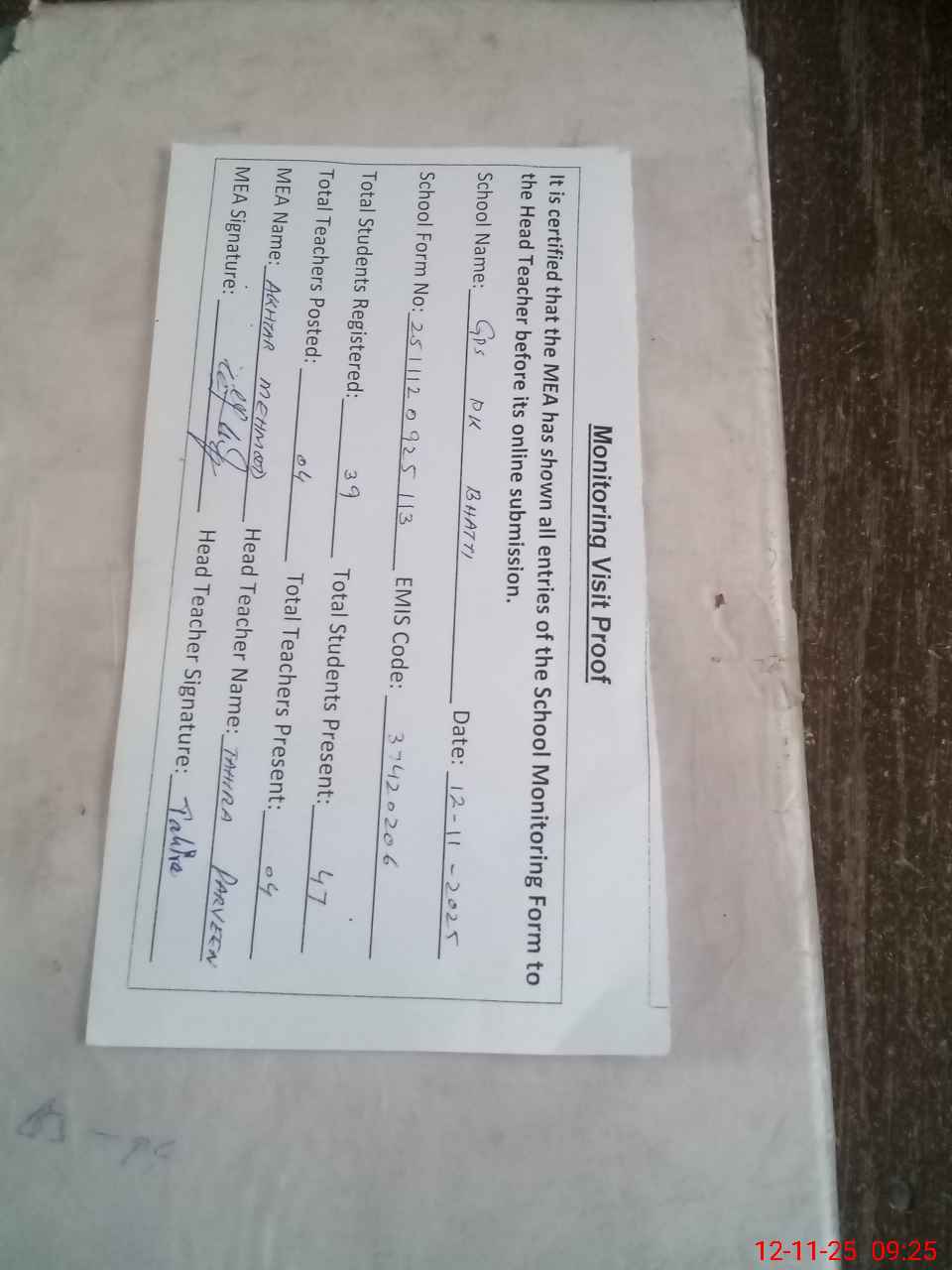 | EMIS Code: 37420206 | Name of School: GPS DHOK BHATTI | |||