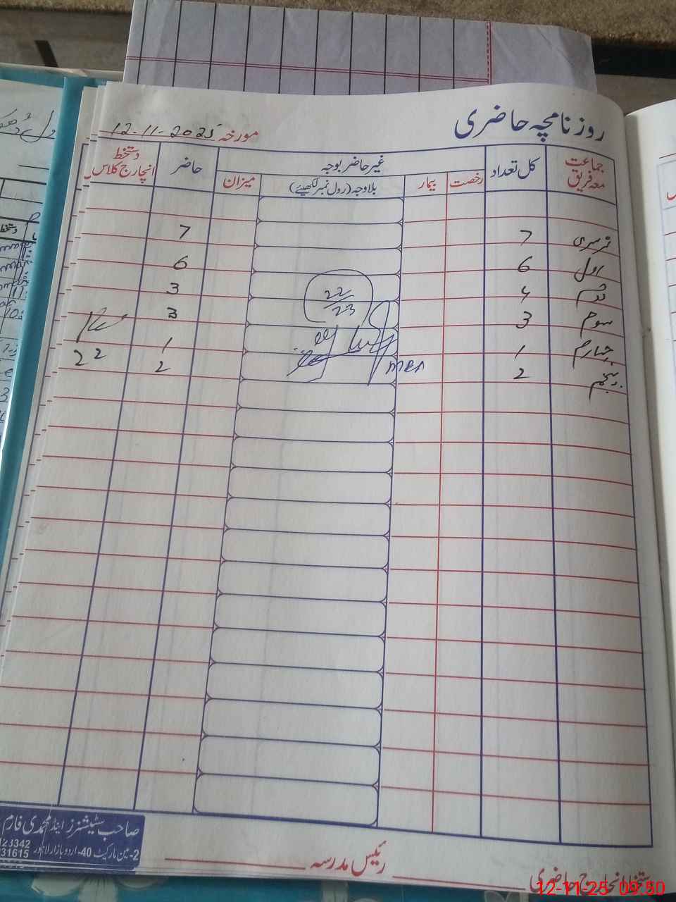 | CNIC | Full Name | Designation | R/C | Absence During Last Calender Month |