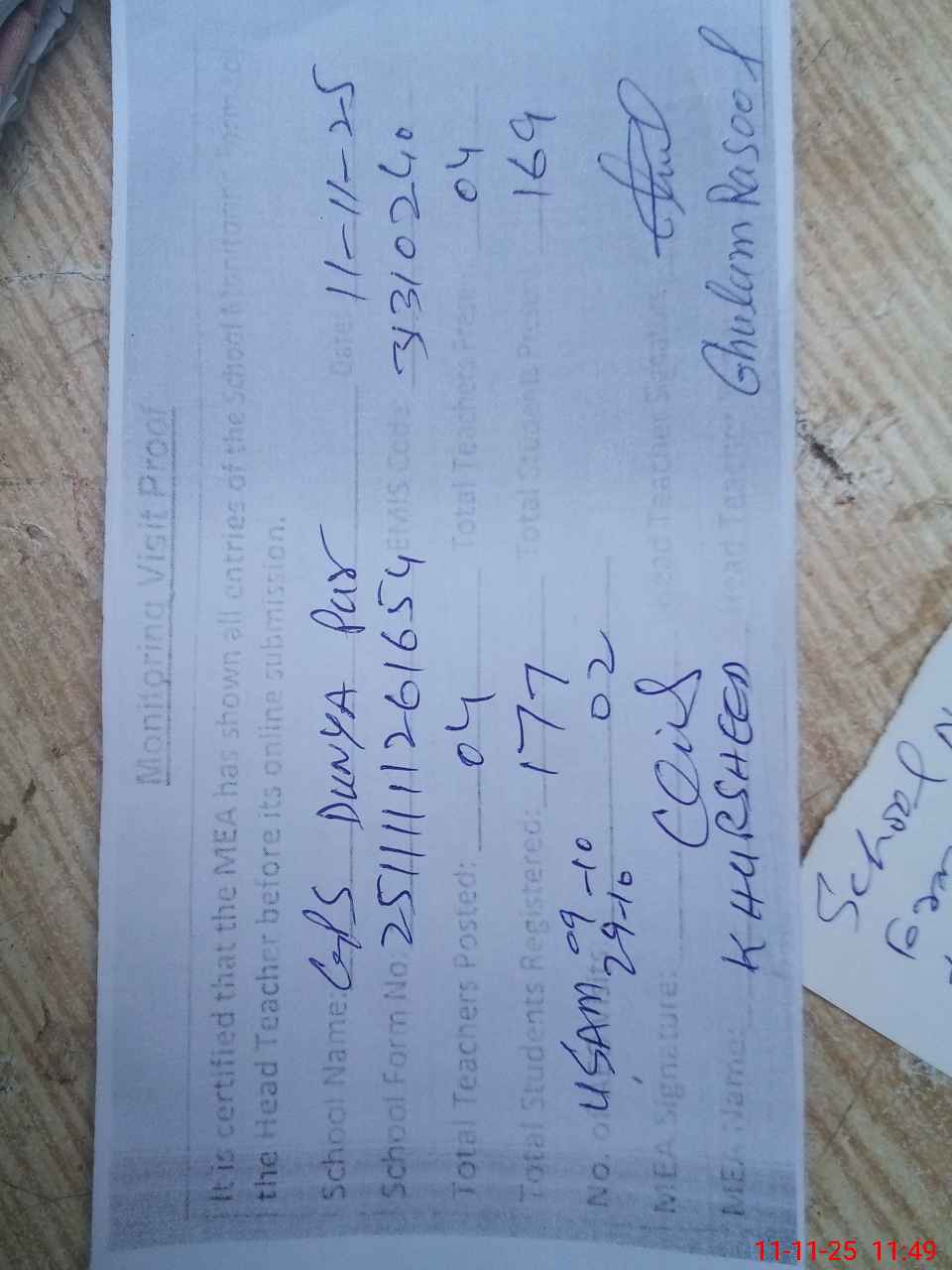| EMIS Code: 31310240 | Name of School: GPS DUNIA PUR | |||
