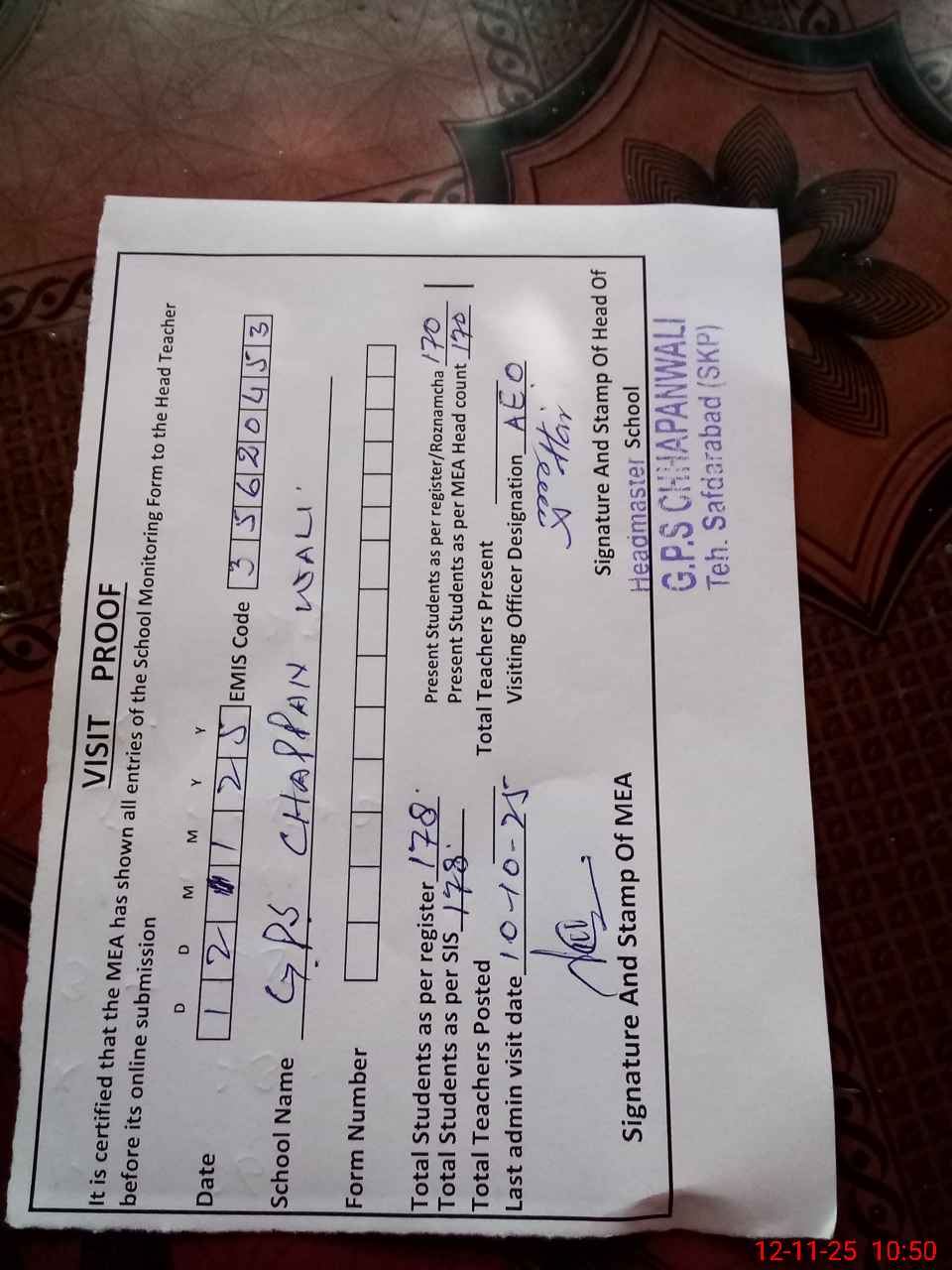 | EMIS Code: 35620453 | Name of School: GPS CHHAPAN WALI | |||