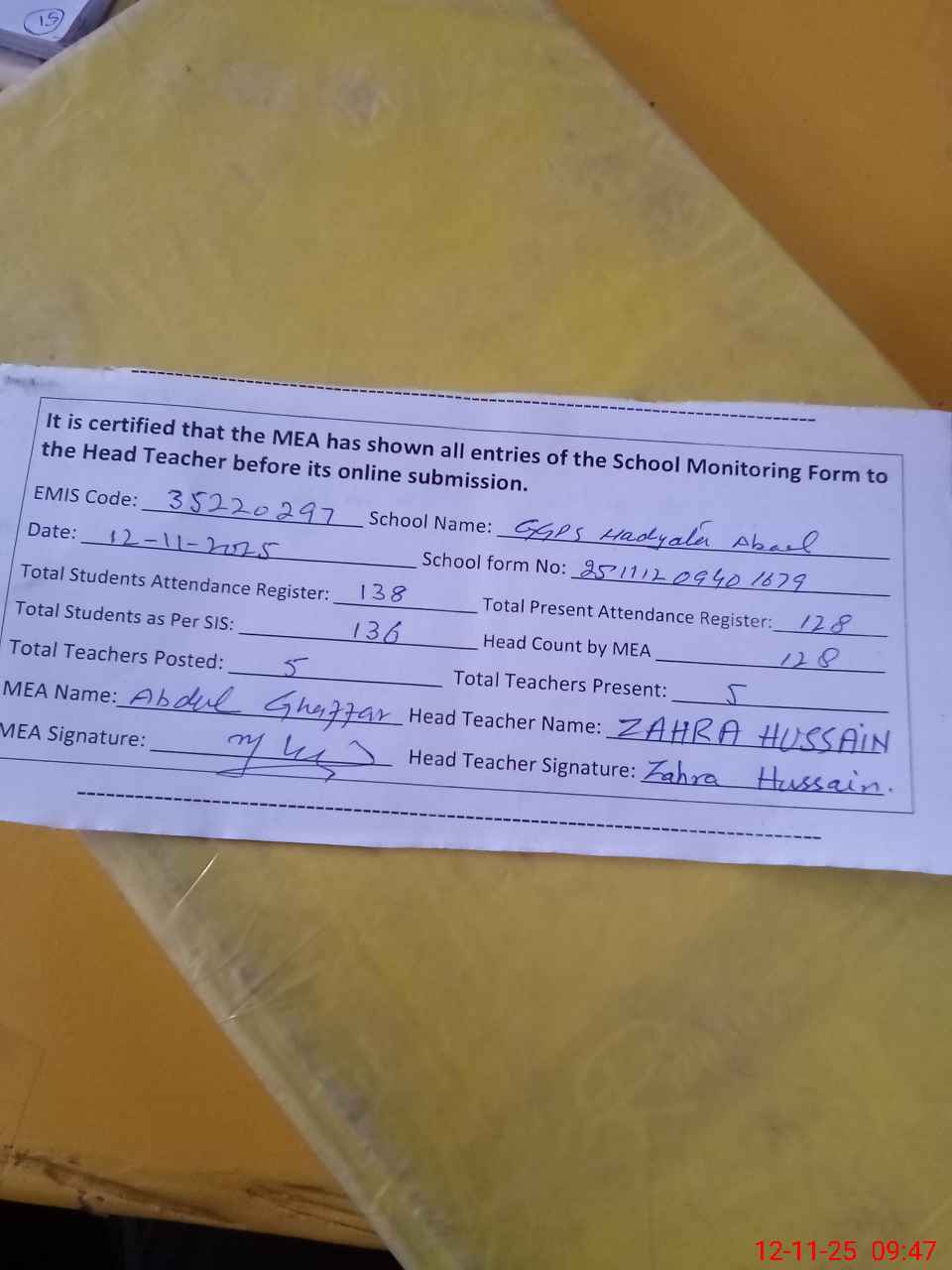 | EMIS Code: 35220297 | Name of School: GGPS HADYATA ABAD | |||