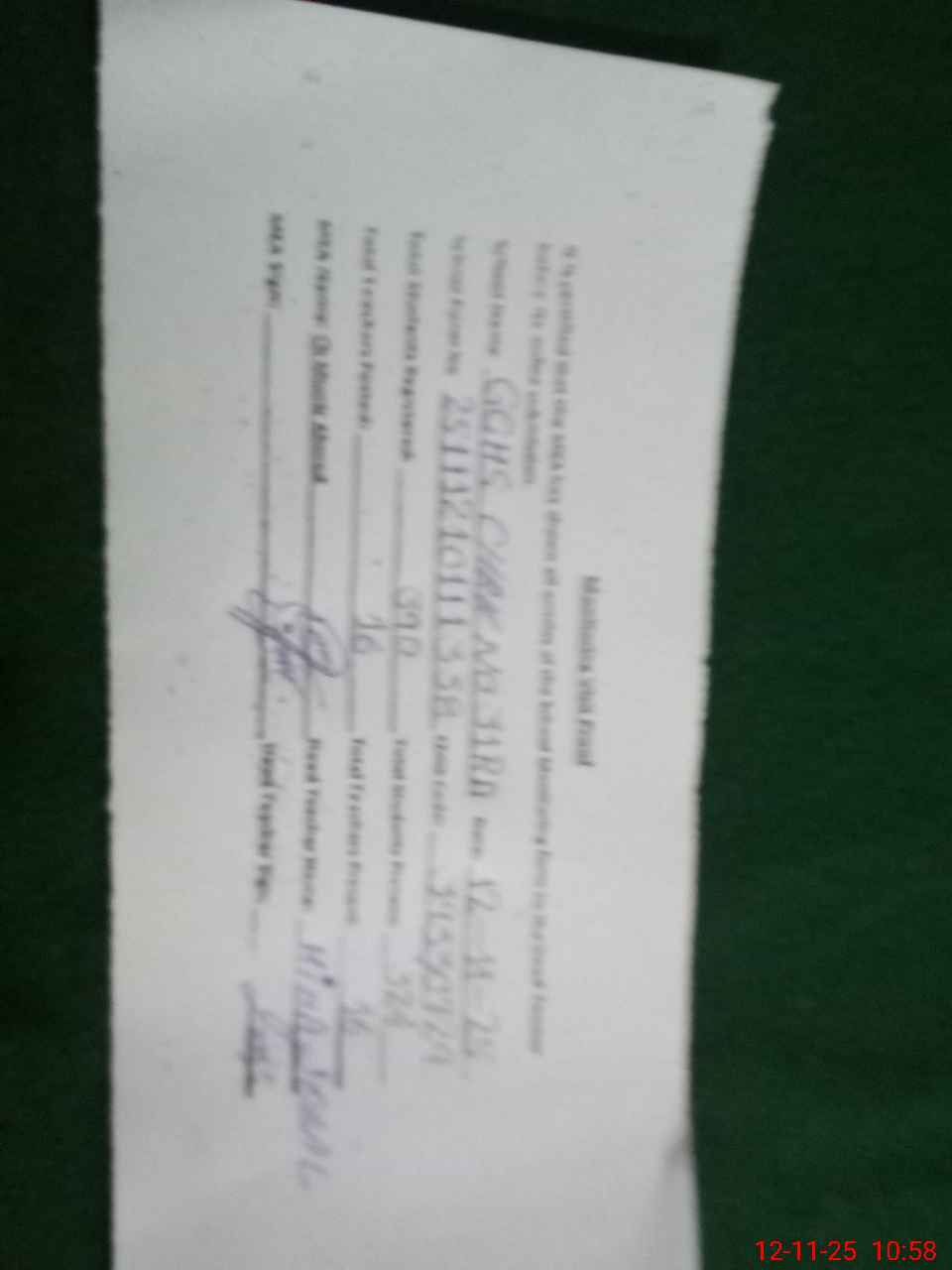 | Monitoring Date: 12-11-2025 | Start Time: 12-11-2025 10:11 AM | End Time: 12-11-2025 10:58 AM | Name of MEA: MU**** AH**** | |