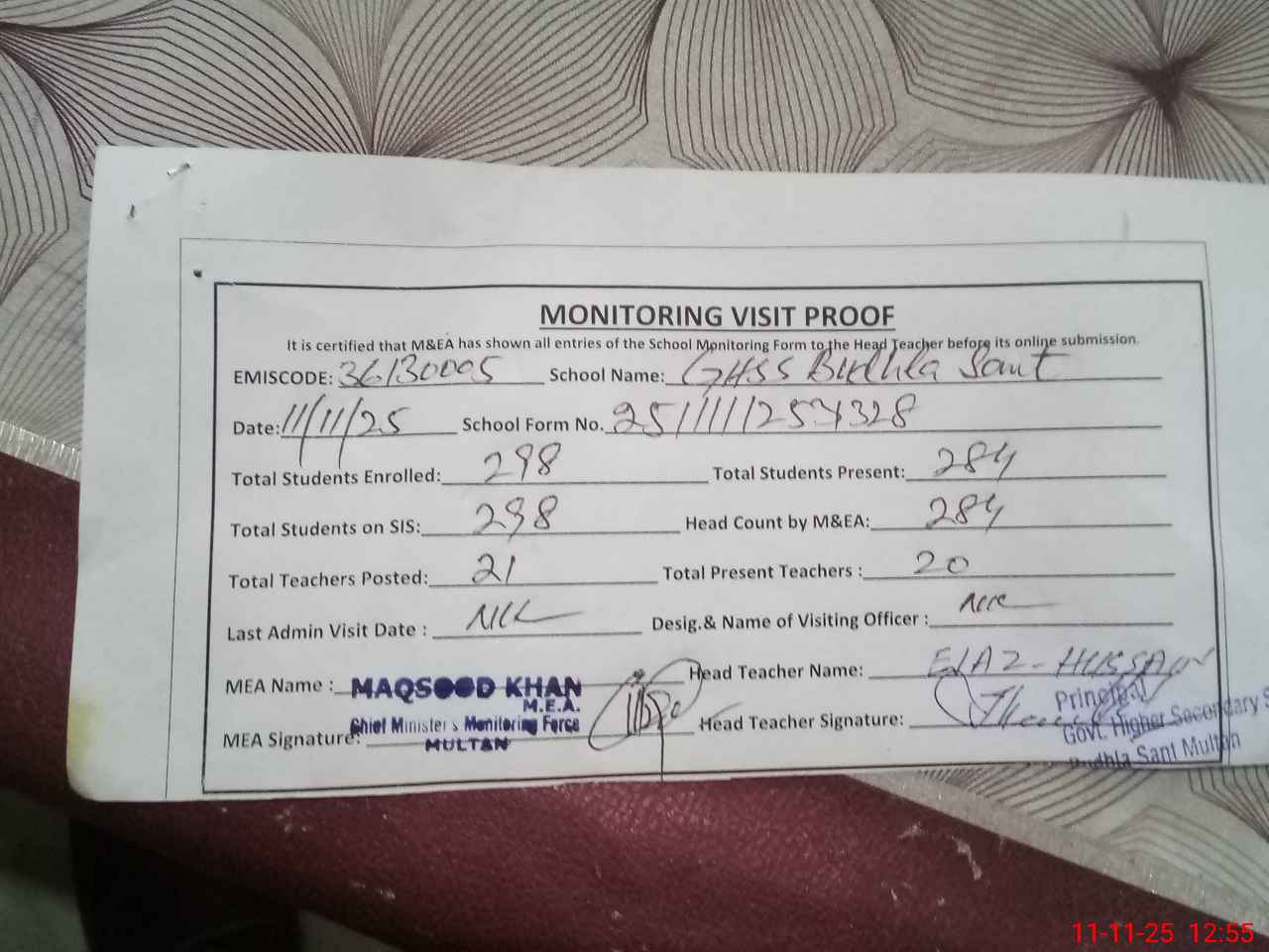 | EMIS Code: 36130005 | Name of School: GHSS BUDHLA SANT MULTAN | |||