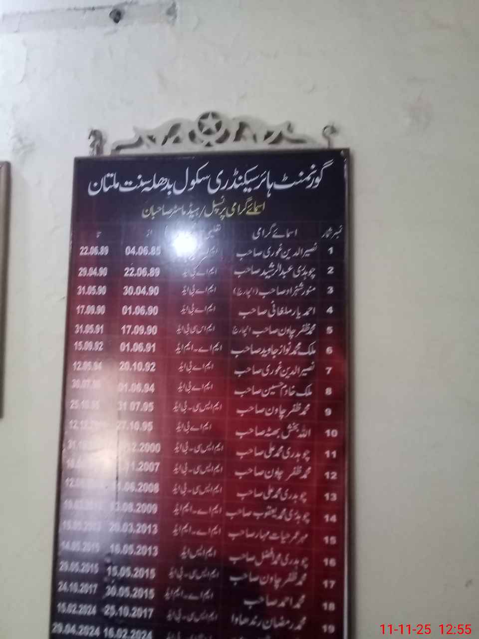| District: MULTAN | Tehsil: MULTAN SADAR | Markaz: SECONDARY-WING | Level: H.Sec. | |