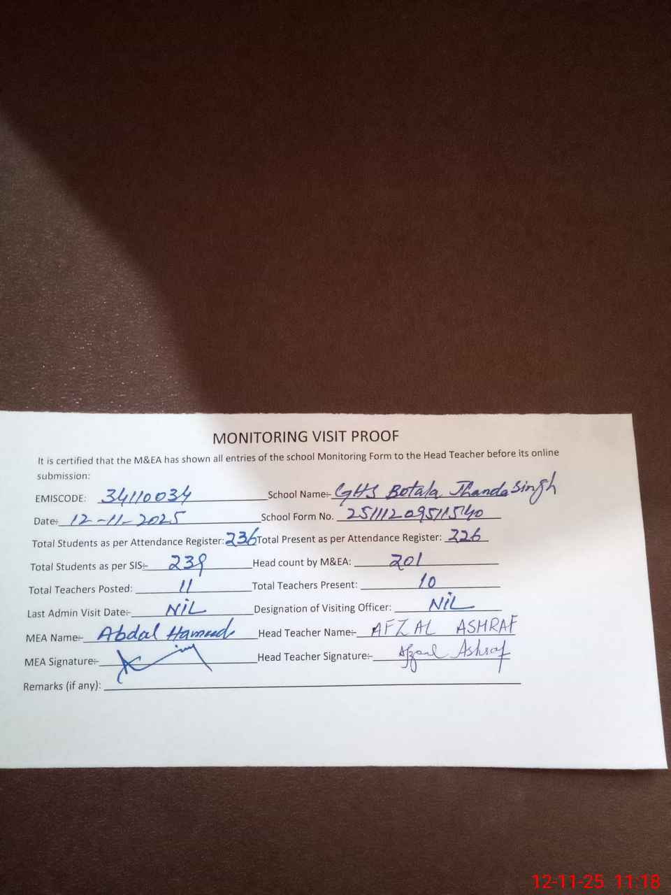 | EMIS Code: 34110034 | Name of School: GHS BOTALA JHANDA SINGH | |||