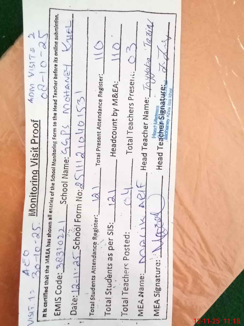 | EMIS Code: 38310221 | Name of School: GGPS MOHANEY KHEL | |||