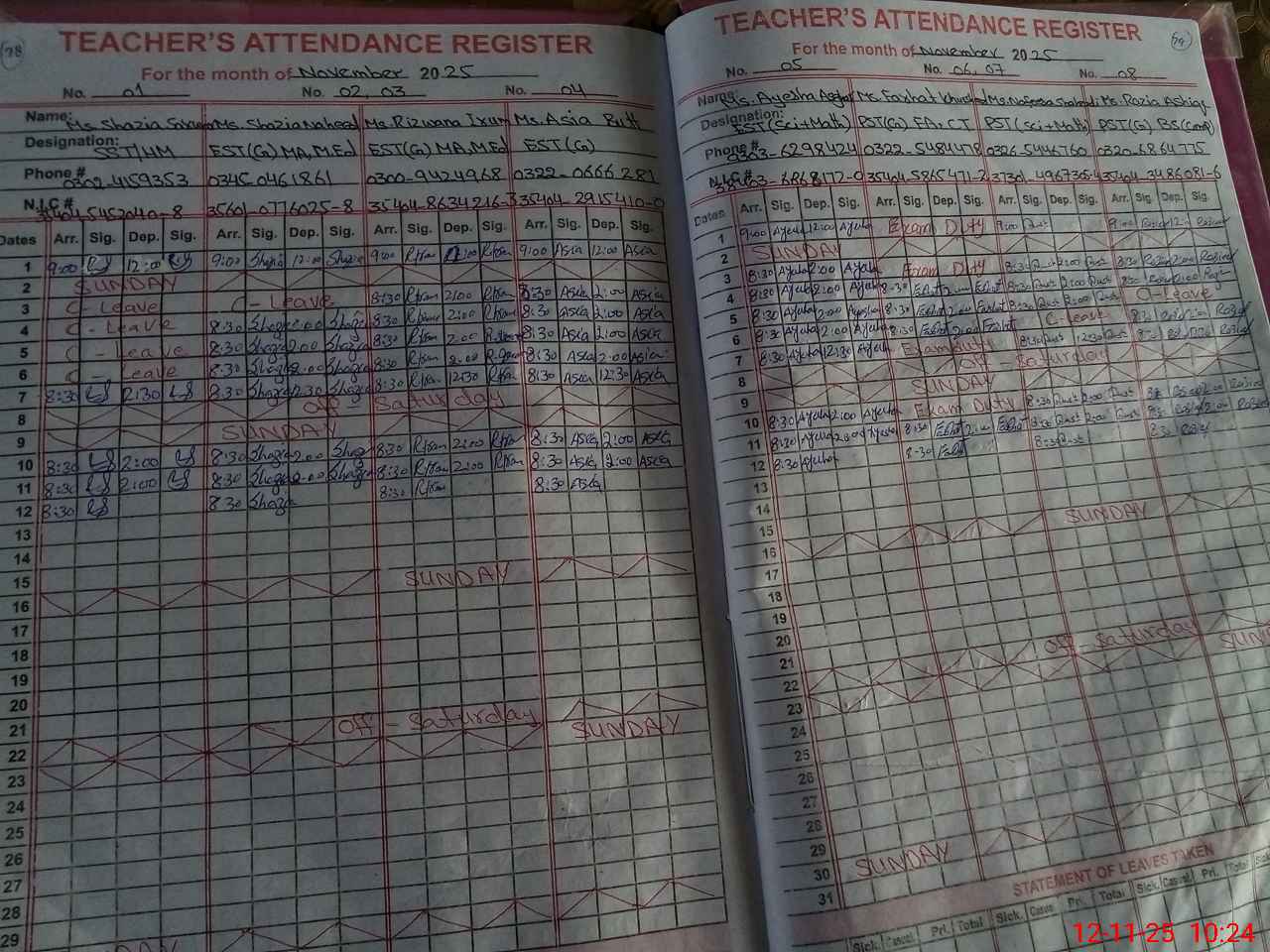 | CNIC | Full Name | Designation | R/C | Absence During Last Calender Month |