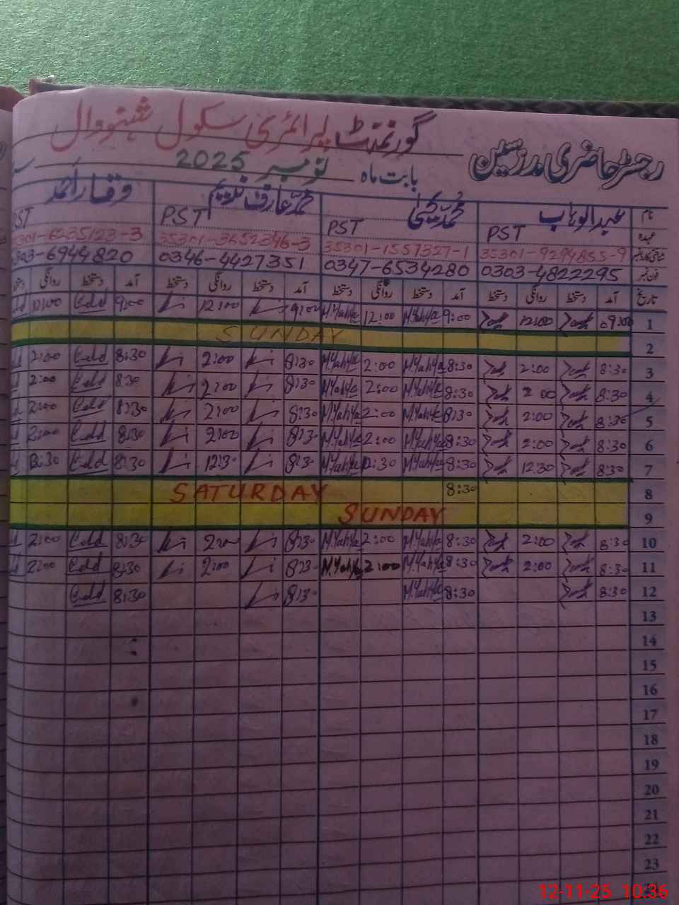| Name: AB**** WA**** Designation: (School Headmaster's/Headmistress's) PST Phone/Cell Number: 03**** |