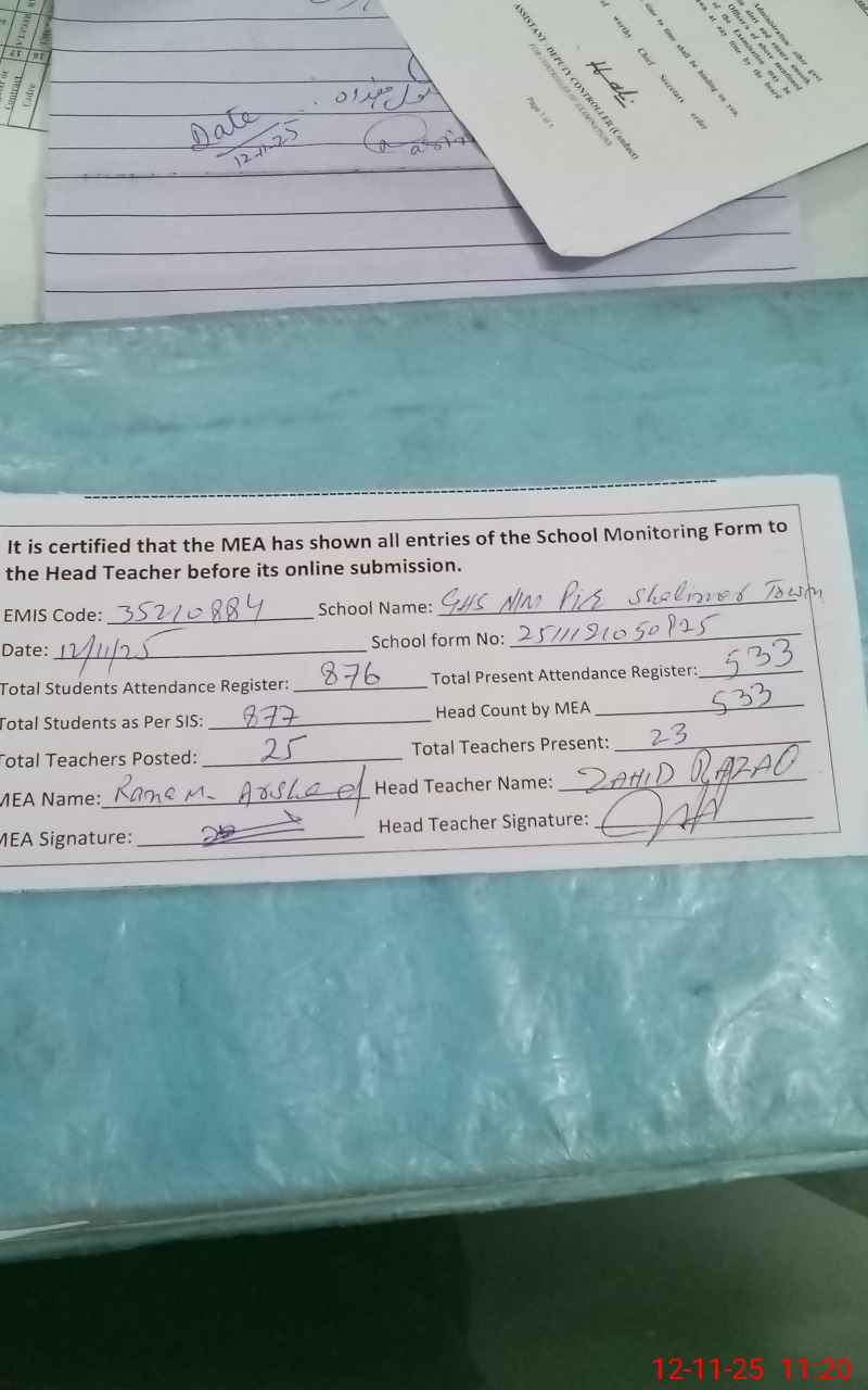 | EMIS Code: 35210884 | Name of School: GHS NIM PIR SHALIMAR TOWN (EX-MCL) | |||