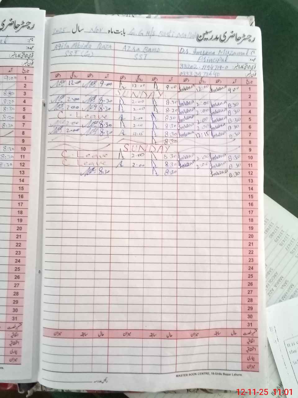 | CNIC | Full Name | Designation | R/C | Absence During Last Calender Month |