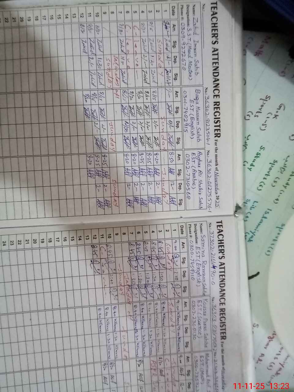 | Name: ZA**** IM**** Designation: (School Headmaster's/Headmistress's) HEADMASTER. SST Arts Phone/Cell Number: 03**** |