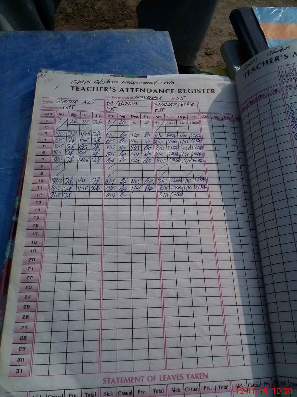 | 33**** | Uz**** Ta**** | CHOKIDAR | Regular | 0 | 0 | 0 | 0 | 0 | 0 | 0 | 0 | 0 | Absent (Un-Authorized) |