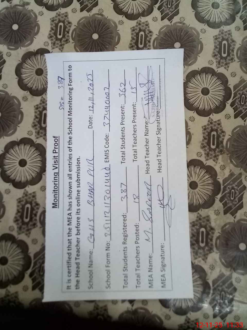 | EMIS Code: 37440002 | Name of School: GHS BHARPUR | |||