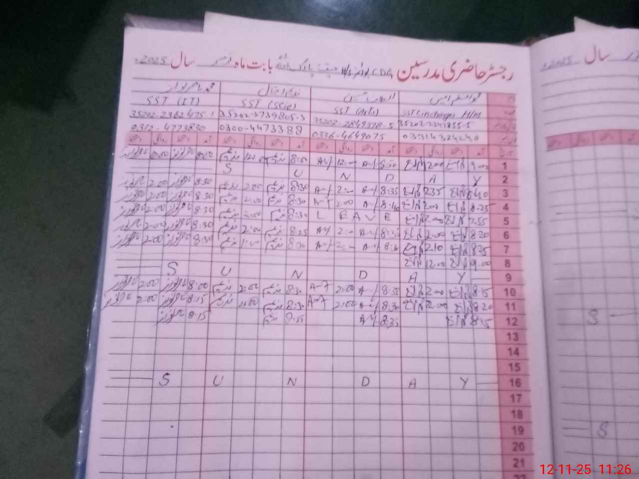 | CNIC | Full Name | Designation | R/C | Absence During Last Calender Month |