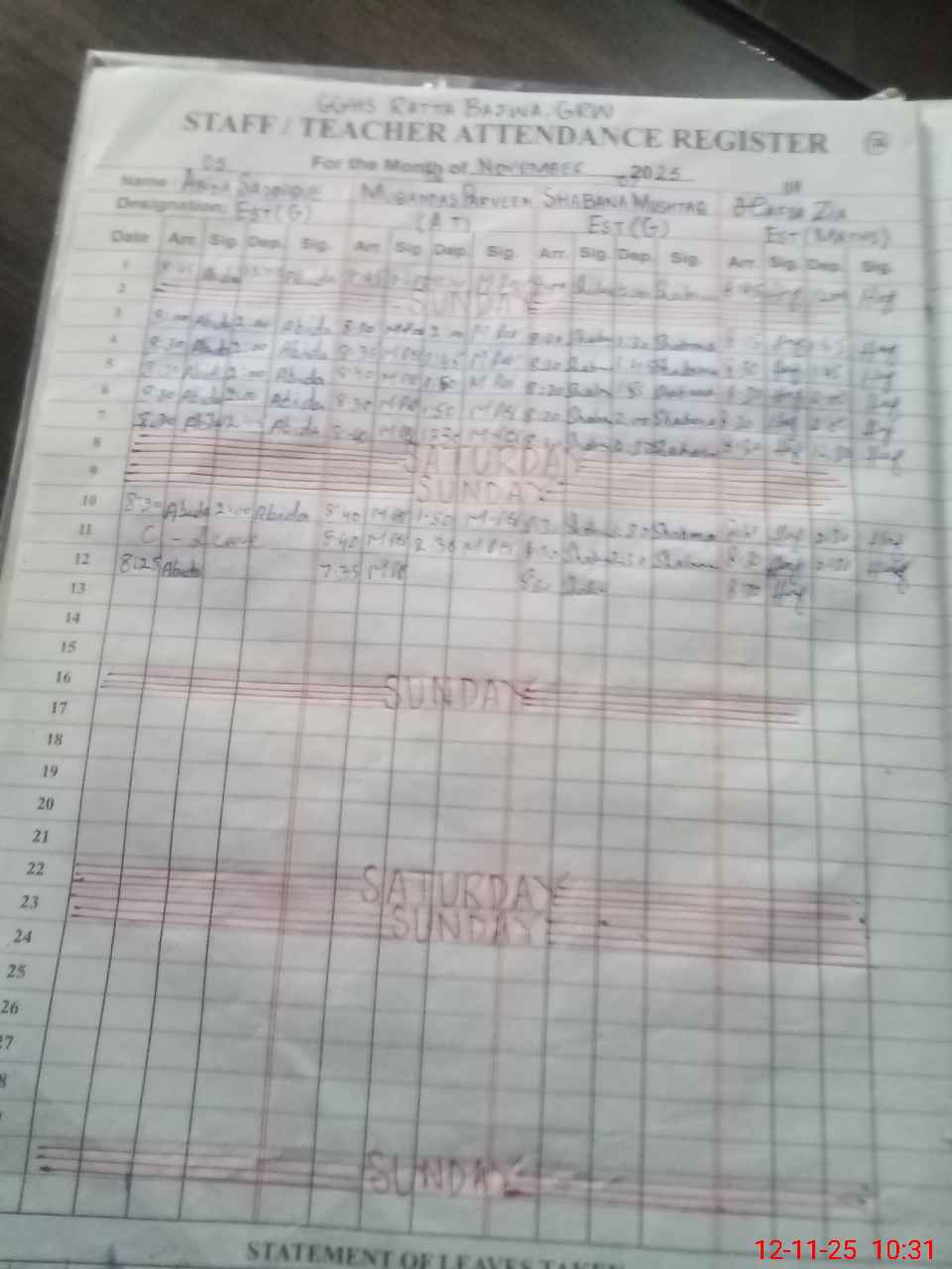| EMIS Code: 34110630 | Name of School: GGHS RATTA BAJWA | |||