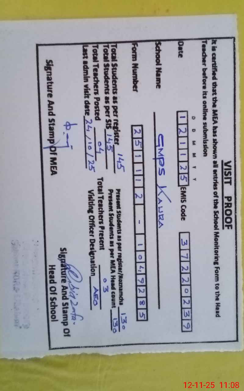 | Attendance Register | Head Teacher | MEA with School | Visit Proof |