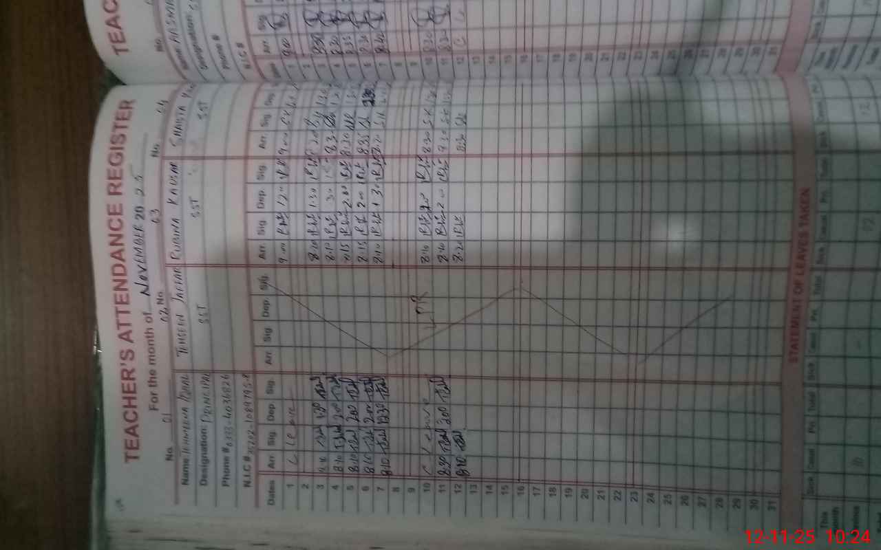 | Remarks (Use Separate Page if Required): 01 teacher Huma idrees EST Sci is long absent since 01 January 2023 01 Nonteaching staff Imran sweeper is long absent since13 August 2024 16 wash rooms are nonfunctional due to blocked no water and locked Soap is missing at maximum hand washing points Cleaning of classes and washrooms is not up to mark 02 Dogs are available in one room which are dangerous for school students Electricity is not available in Amna block from 03 days Students attendance registers are not available | |||||