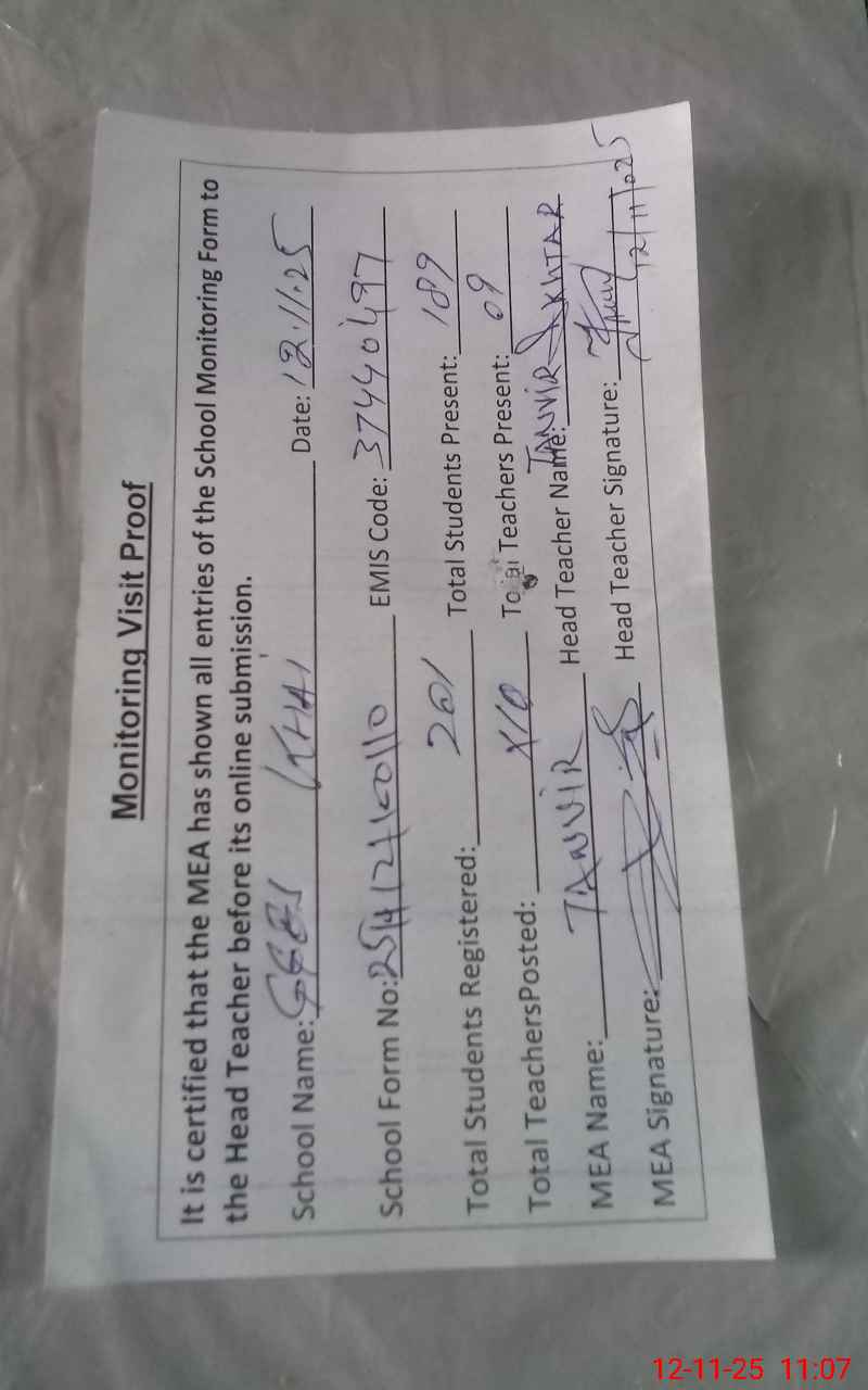 | Attendance Register | Head Teacher | MEA with School | Visit Proof |