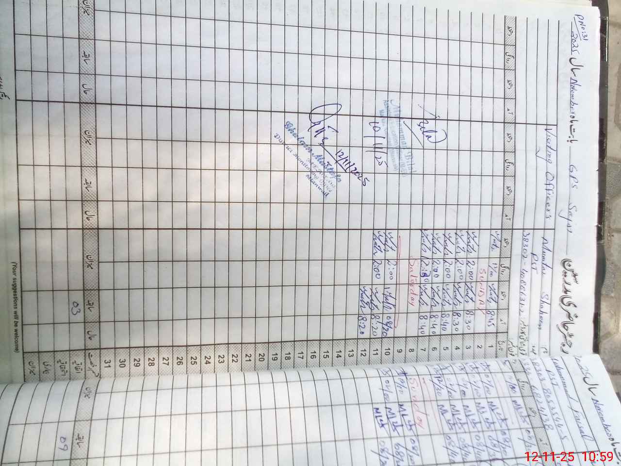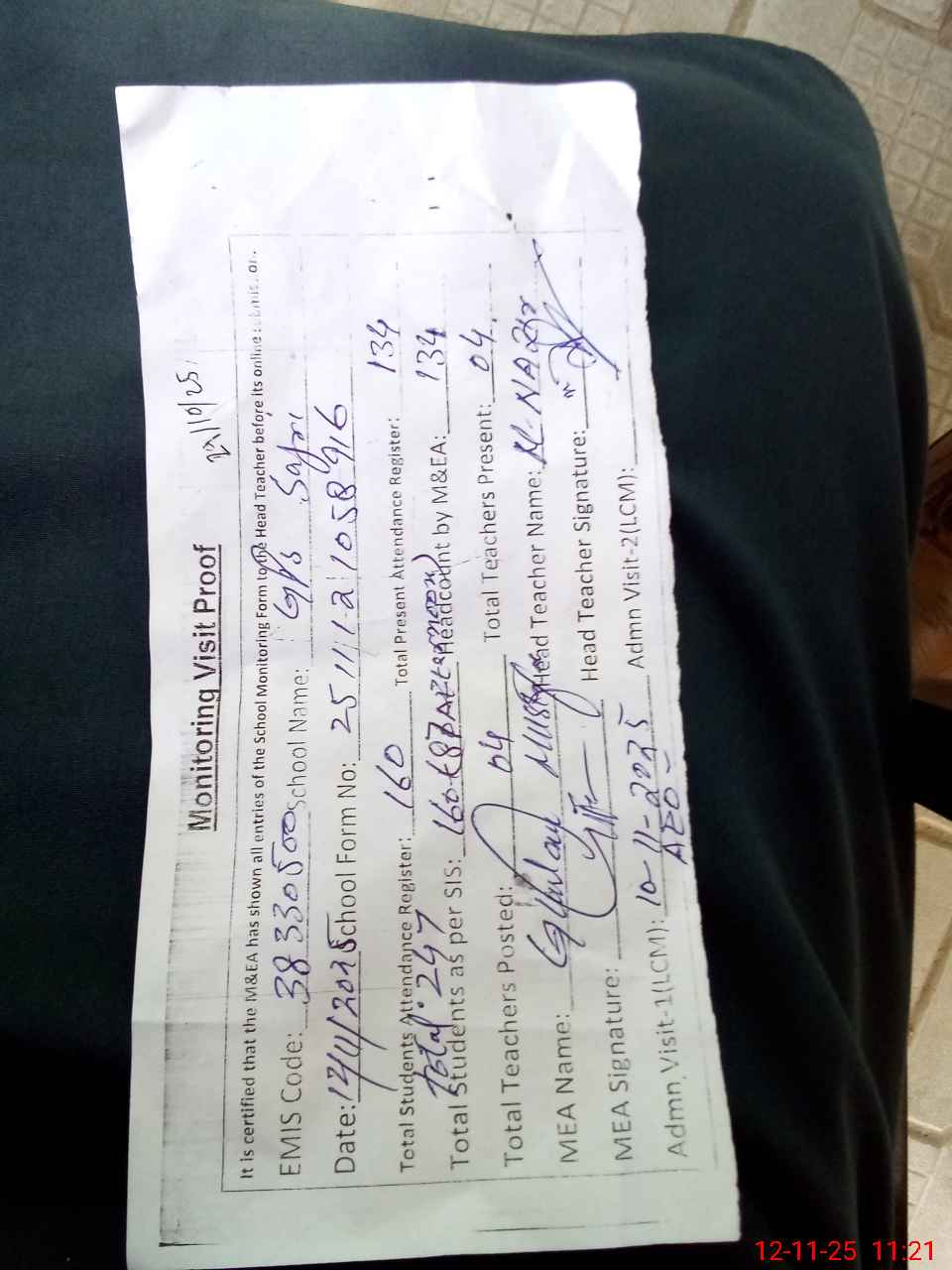 | Monitoring Date: 12-11-2025 | Start Time: 12-11-2025 10:56 AM | End Time: 12-11-2025 11:48 AM | Name of MEA: Gh**** Mu**** | |