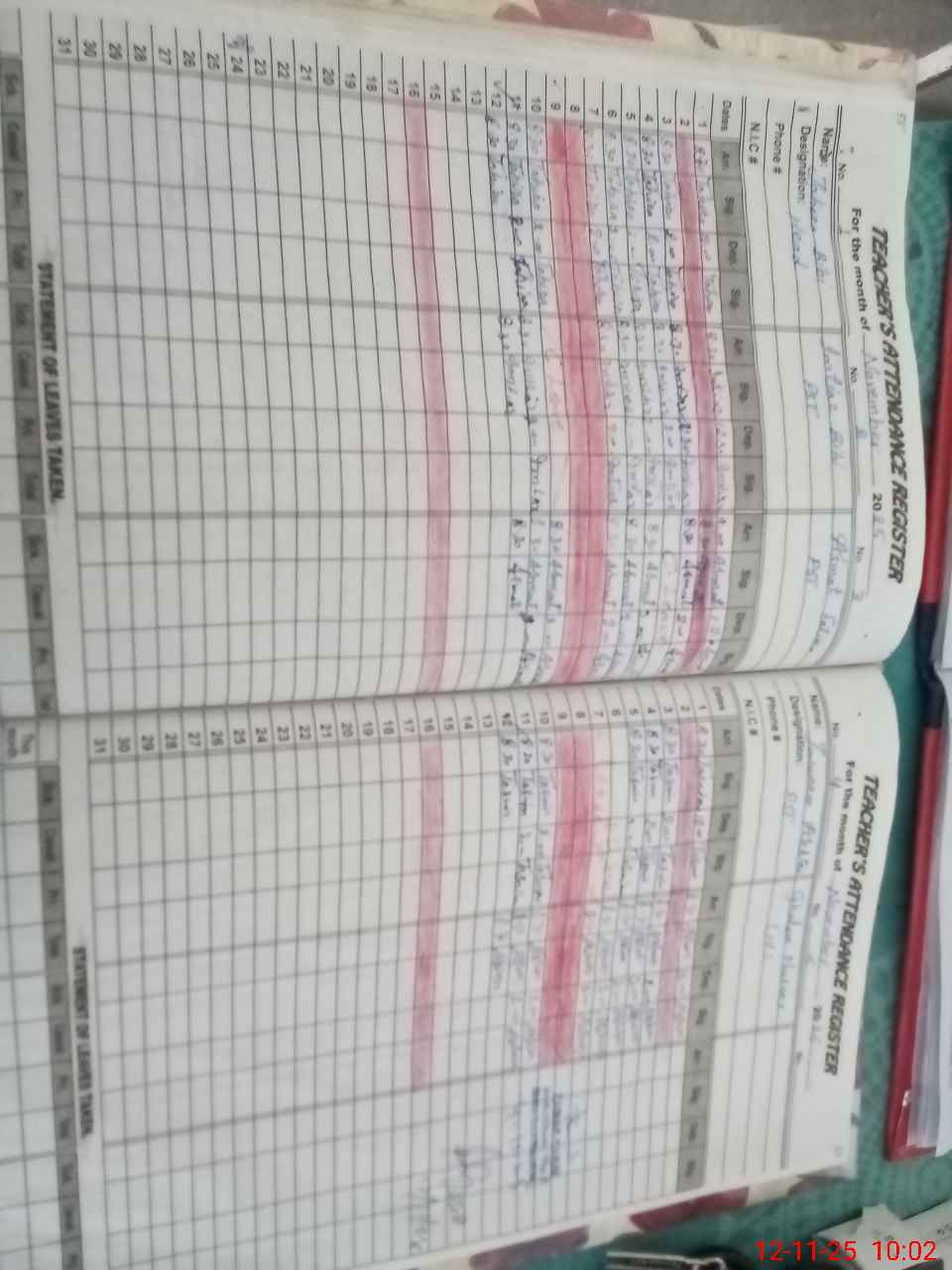 | CNIC | Full Name | Designation | R/C | Absence During Last Calender Month |
