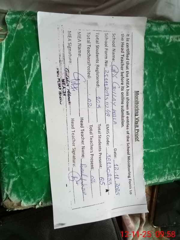 | EMIS Code: 38130233 | Name of School: GPS GULLAY WALA | |||