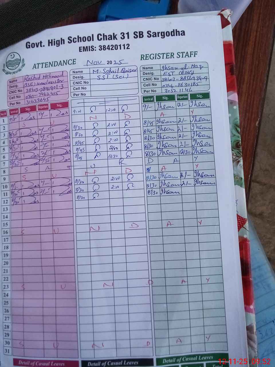 | EMIS Code: 38420112 | Name of School: GHS CHAK NO.31 SB | |||