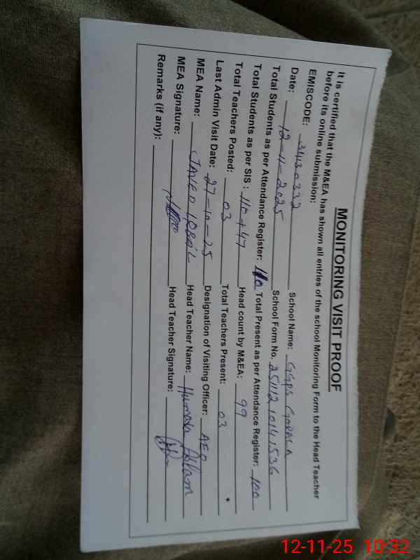 | EMIS Code: 34130332 | Name of School: GGPS GORALA | |||