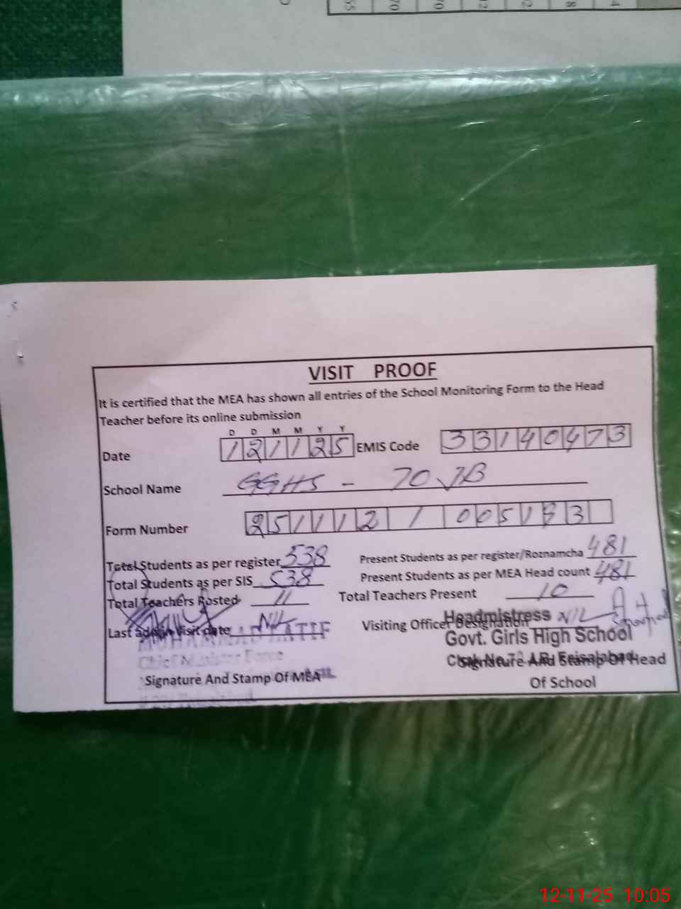 | EMIS Code: 33140473 | Name of School: GGHS CHAK NO 70 JB | |||