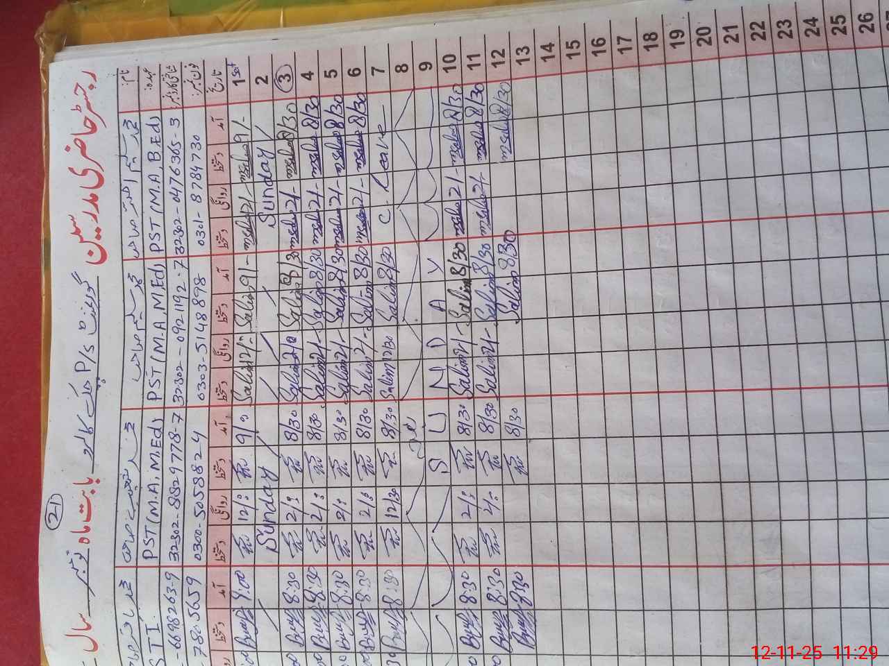 | CNIC | Full Name | Designation | R/C | Absence During Last Calender Month |