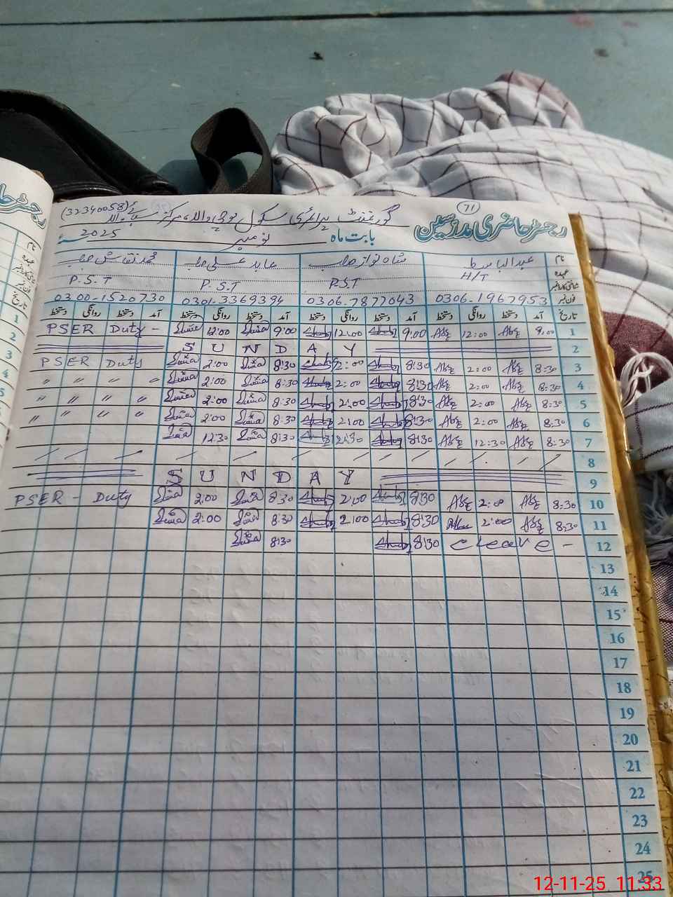 | CNIC | Full Name | Designation | R/C | Absence During Last Calender Month |