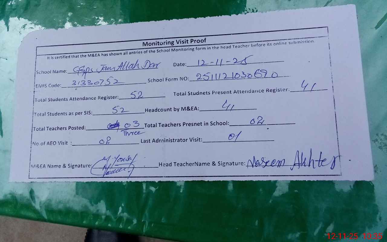 | EMIS Code: 31330752 | Name of School: GGPS BASTI JAM ALLAH DAR PANWAR | |||
