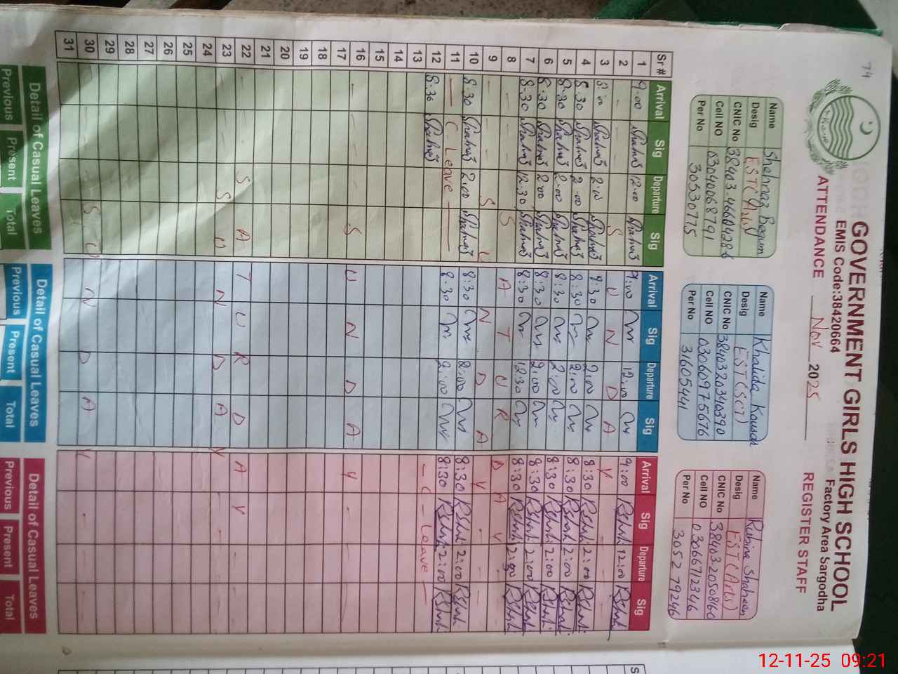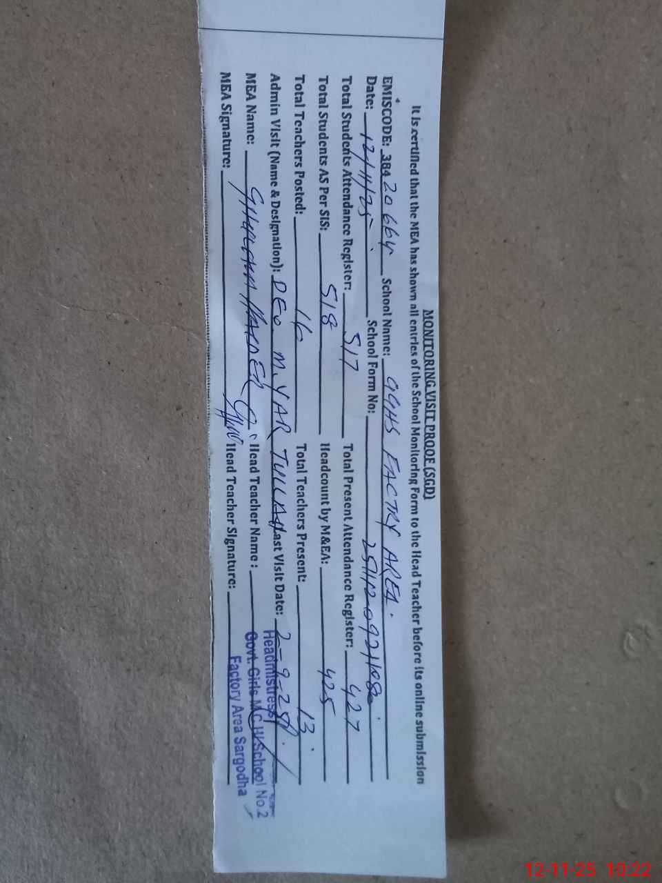 | EMIS Code: 38420664 | Name of School: GGHS FACTORY AREA SARGODHA | |||
