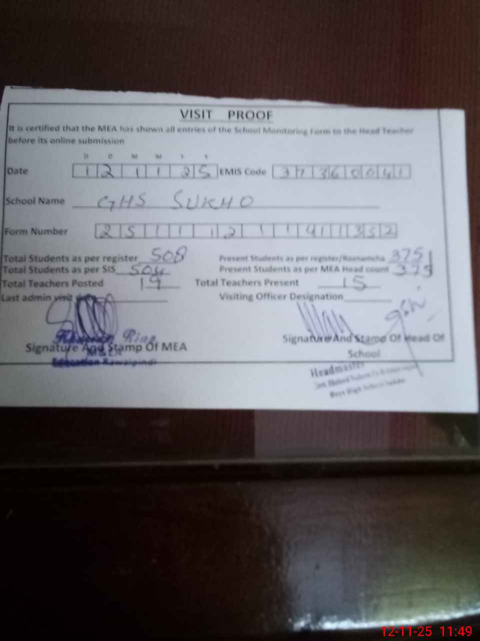 | EMIS Code: 37360041 | Name of School: GHS SUKHO | |||