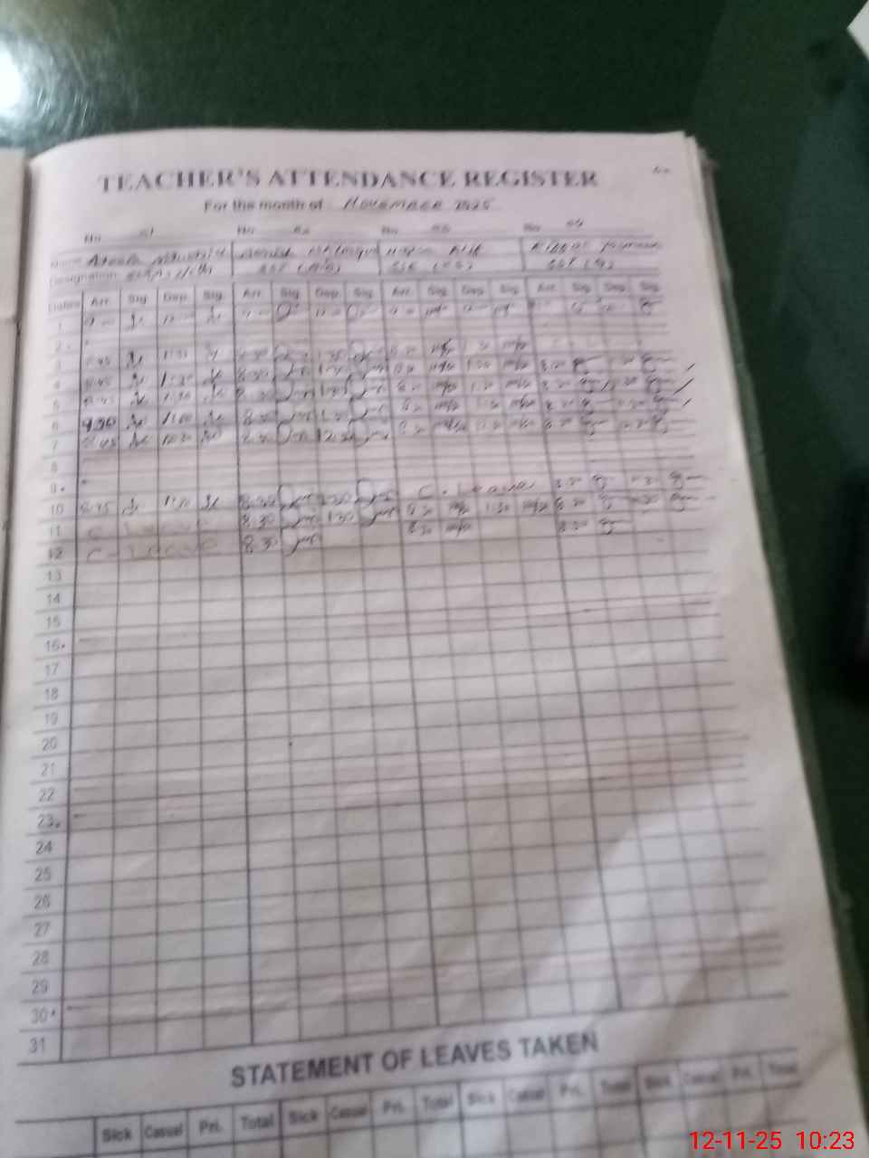 | CNIC | Full Name | Designation | R/C | Absence During Last Calender Month |